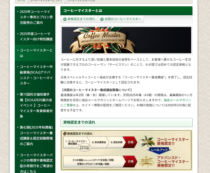 「コーヒーに対するより深い知識と基本技術の習得をベースとして、お客様へ豊かなコーヒー生活が提案できるプロのコーヒーマン(サービスマン)のこと」