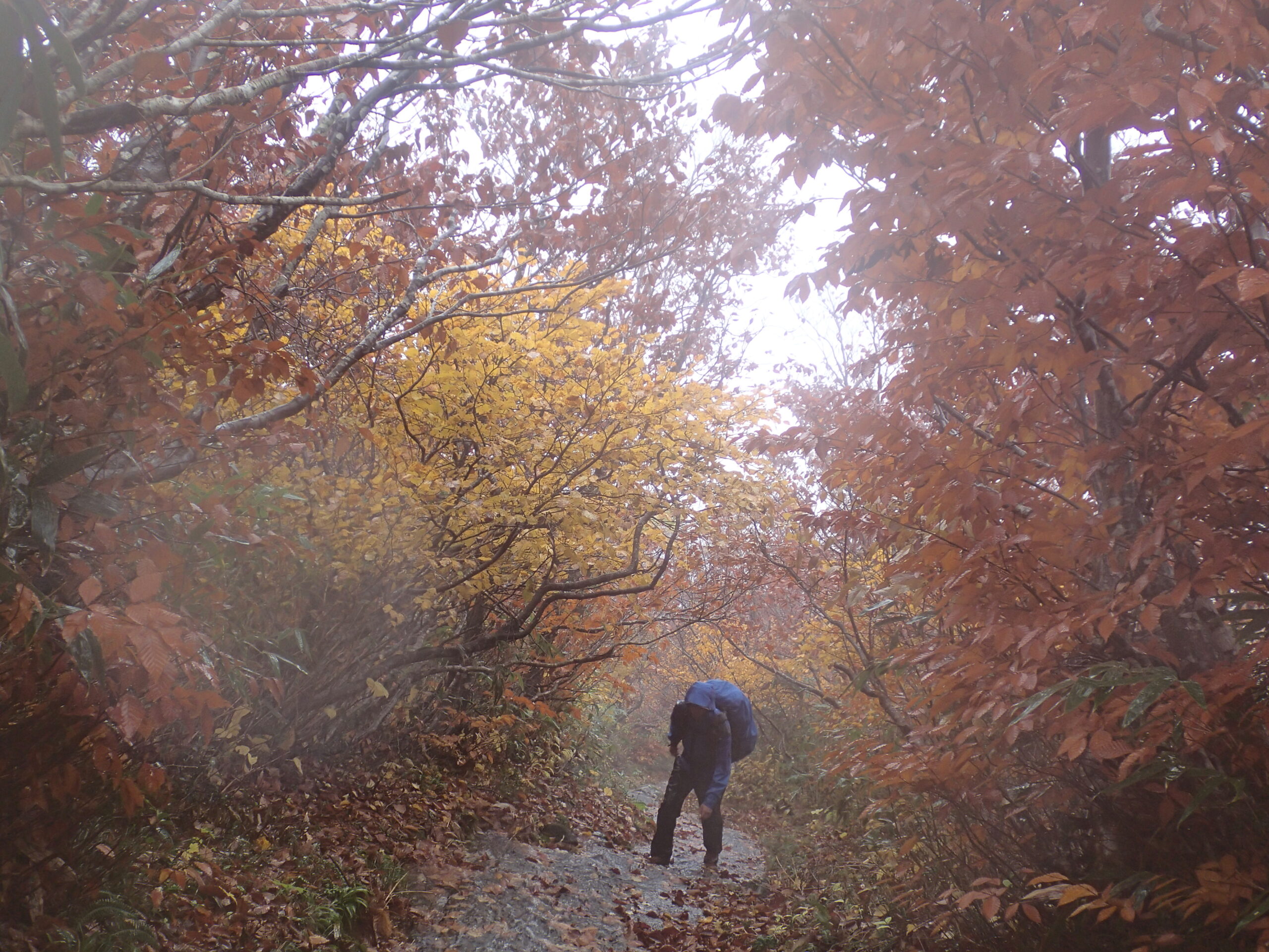 登山道を彩っている。 前日の疲労も忘れ、私は夢中になって歩き続けた。 満開の紅葉は、この時期の鳥海山が持つ、 最高のご褒美のようなものだった。
