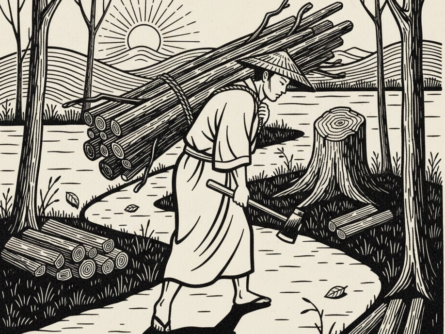 重い薪を背負うことは、
